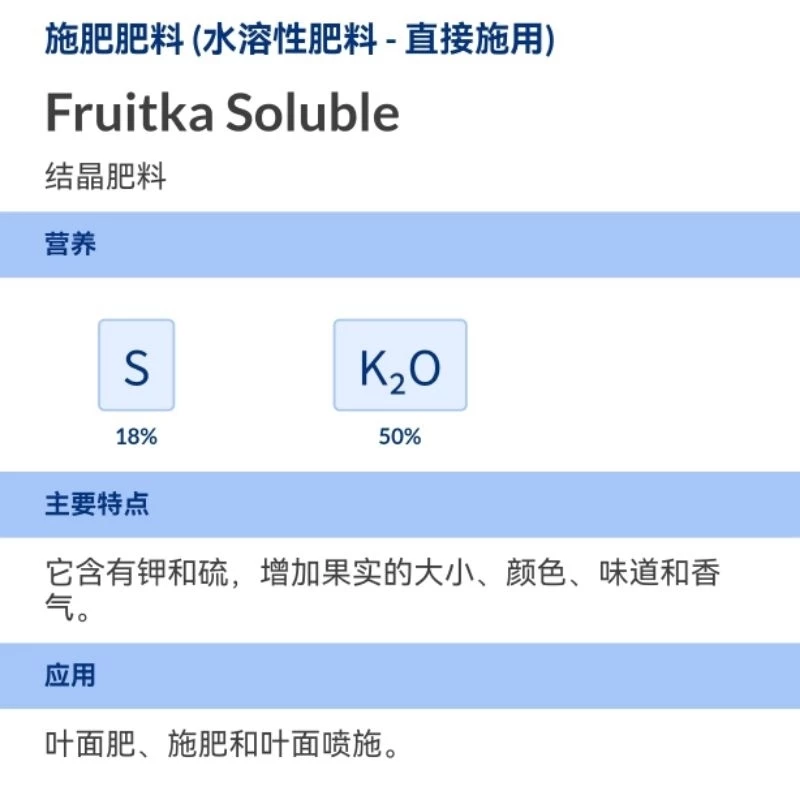 -切勿将罐中的 Fruitka Soluble 与含钙肥料混合