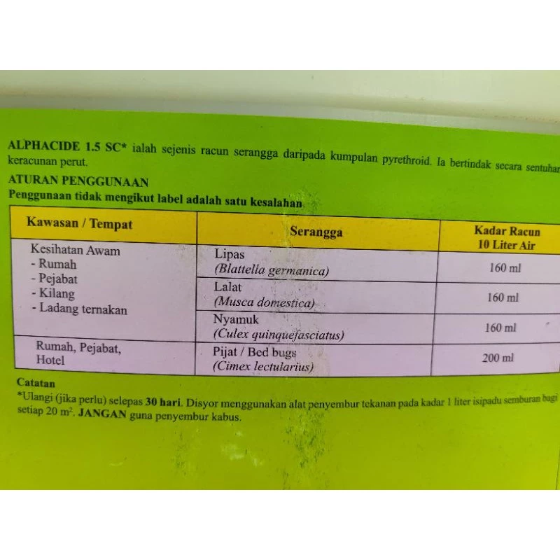 ALPHACIDE 1.5 SC 4L / A.I:ALPHA-CYPERMETHRIN 1.5%