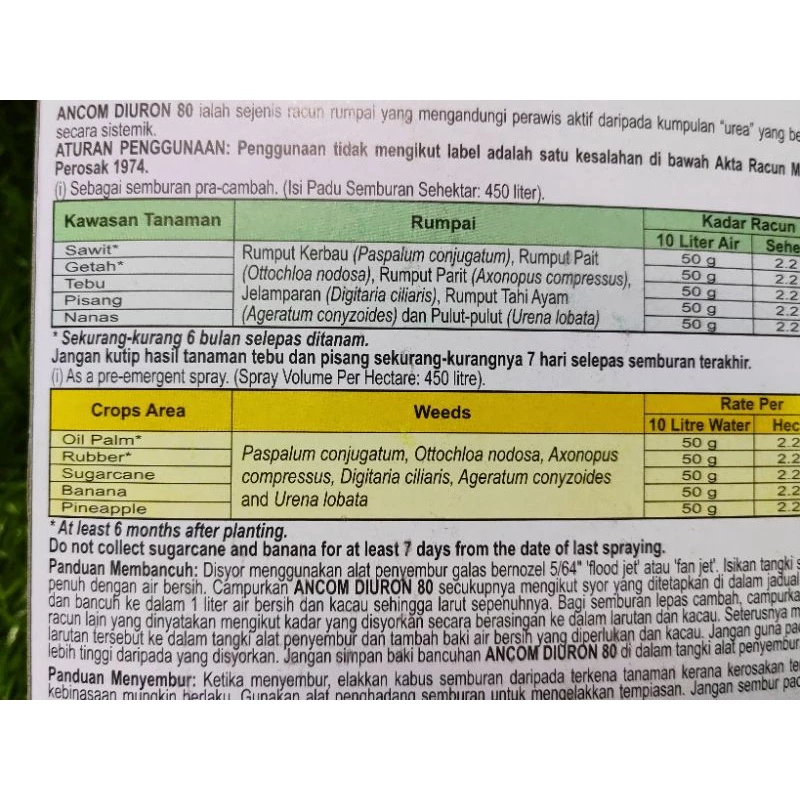 A systemic herbicide used for pre- and post-emergence. It is used to control grasses and broad-leaved weeds in oil palm, rubber, sugar cane and banana (at least 6 months after planting).