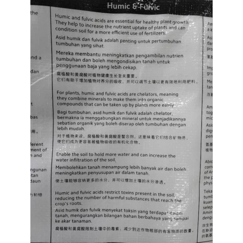 2. 腐植酸(5%)改善土壤结构,促进保水能力和土壤通气。