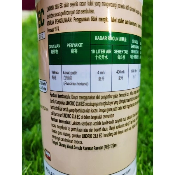 LINORIO 23.6EC ialah sejenis racun kulat yang mengandungi perawis aktis daripada kumpulan ‘methoxycarbamate’ yang bertindak secara perlindungan dan sembuhan.