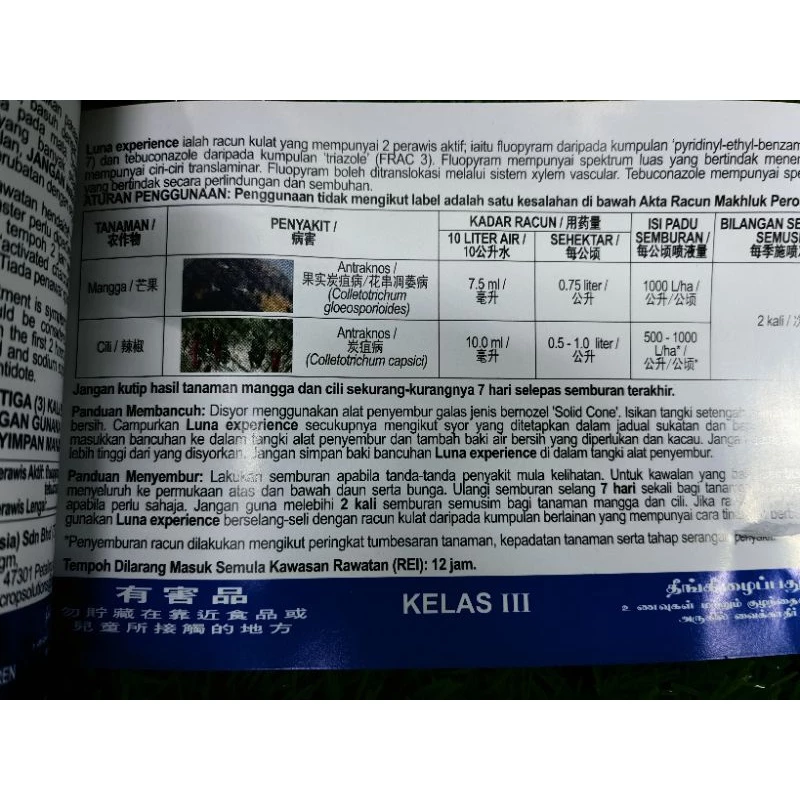 Luna Experience fungicide uses the power of two fungicide modes of action to control key fungal pathogens in bananas and grapes. Luna Experience is a combination of two active ingredients; Fluopyram and tebuconazole. Fluopyram belongs to a novel Succinate Dehydrogenase Inhibitor (SDHI) chemical class discovered by Bayer. It controls fungal pathogens by blocking energy production through targeting the respiration process in the mitochondria of the fungus cell. Tebuconazole is a demethylation inhibitor (DMI), it controls fungal pathogens by interfering in the process of building the fungal cell wall, consequently, inhibiting the reproduction and continued growth of the fungus.