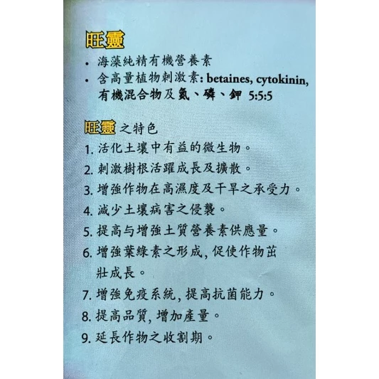 · 含 高 量 植 物 刺 激 素 : betaines, cytokinin,