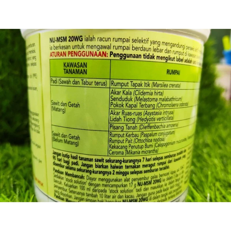 NU-MSM 20WG 500g/250g – Nufarm /RACUN RUMPAI Anak Kayu,senduduk,paku pakis. Sejenis Ally