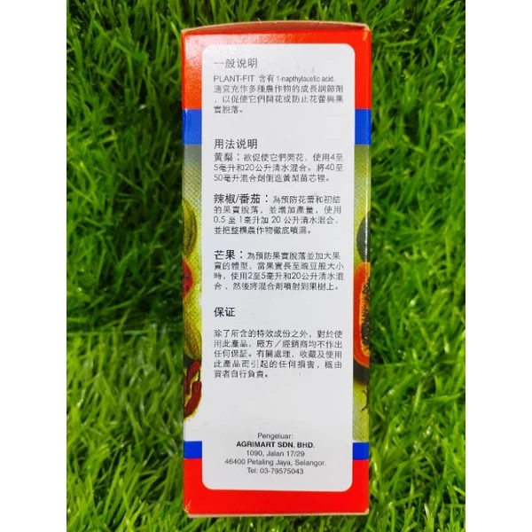 A plant growth regulator contained 1-napthylacetic acid for use on a wide range plants and crops such as Pineapple, Chillies, Fruits plants and leafy vegetables. Plant-Fit can induce flowering, improve fruit set, increase fruit sizes and uniformity of crop growth.