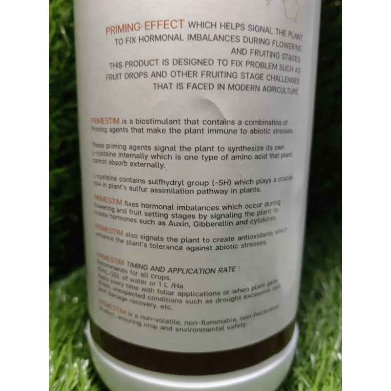 PRIMESTIM adalah biostimulan yang mengandungi pelbagai agen penyebuan yang boleh menjadikan tumbuhan kebal terhadap tekanan abiotik. Pencetus ini memberi isyarat kepada tumbuhan untuk mensintesis L-cysteine nya sendiri secara dalaman, asid amino yang tidak dapat diserap oleh tumbuhan secara luaran.