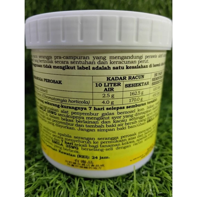 smila 35WG ialah sejenis racun serangga pra-campuran yang mengandungi perawis aktif daripada kumpulan ‘neonicotinoid’ dan ‘pyrethriod’ yang bertindak secara sentuhan dan keracunaan perut.